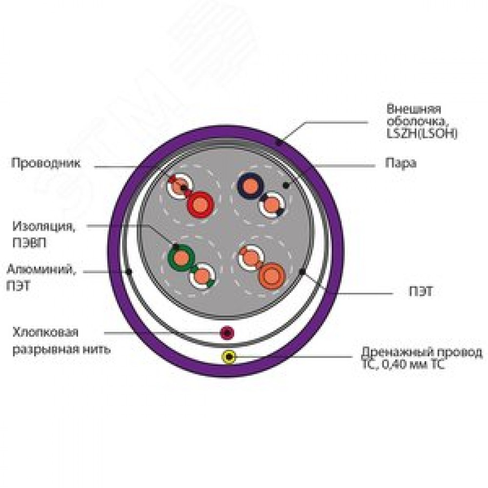 Технические характеристики Витая пара F/UTP 4PR 24AWG Cat.5e LSZH(LSOH) экранированная не распространяет горение(DCM Test Report) Польша