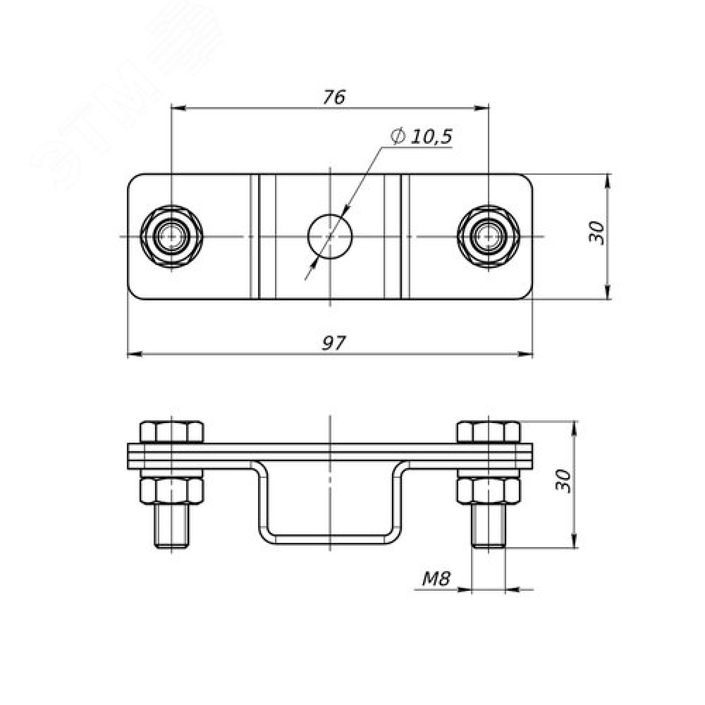 Технические характеристики Держатель полосы двухболтовой