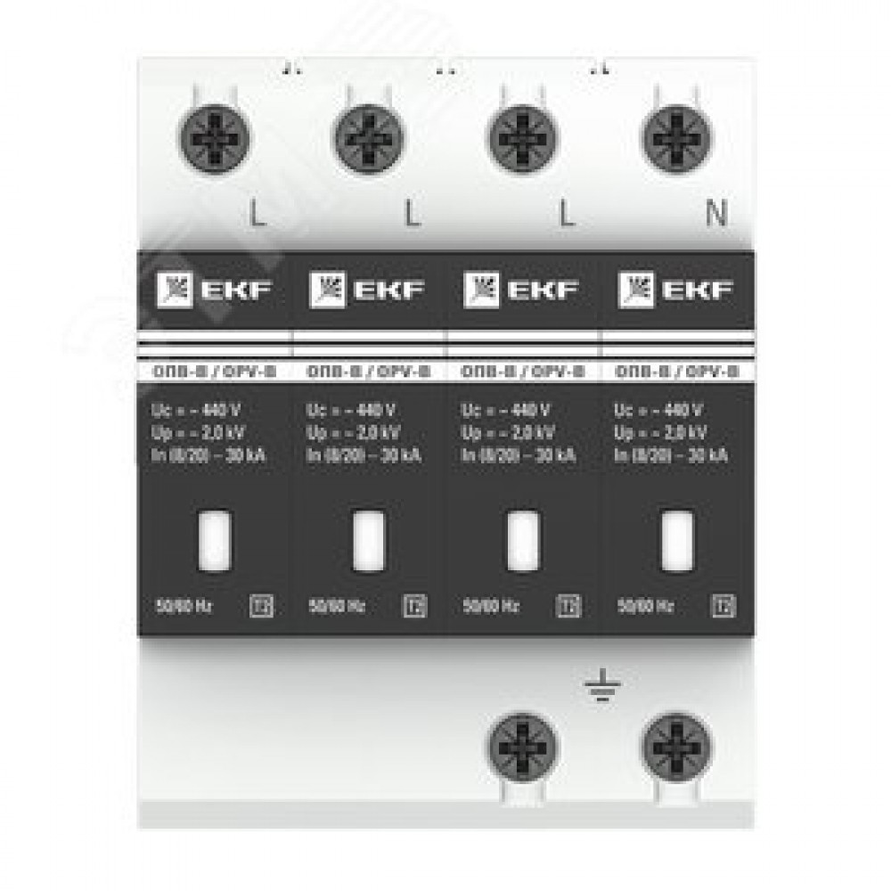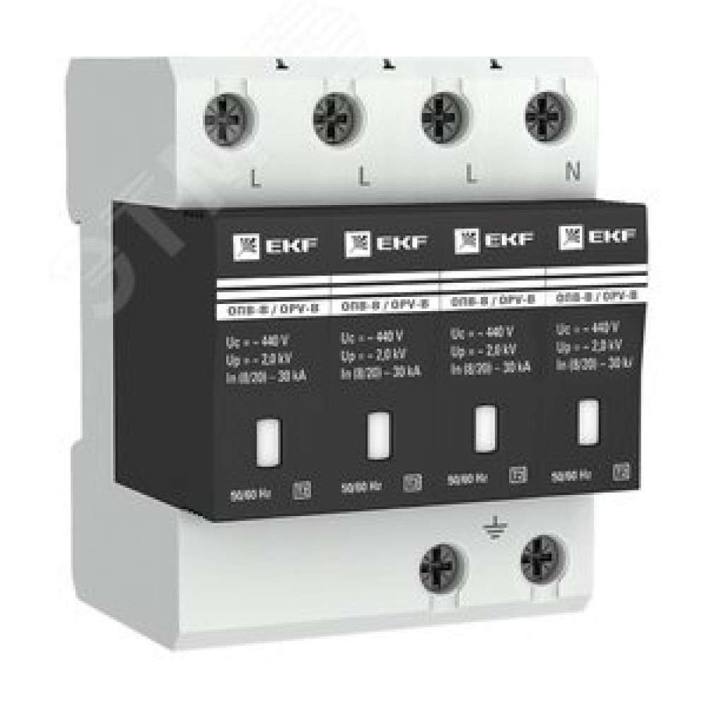 | Комплектация | ограничитель импульсных напряжений ОПВ-B/4P In 30кА 440В с сигн. EKF |