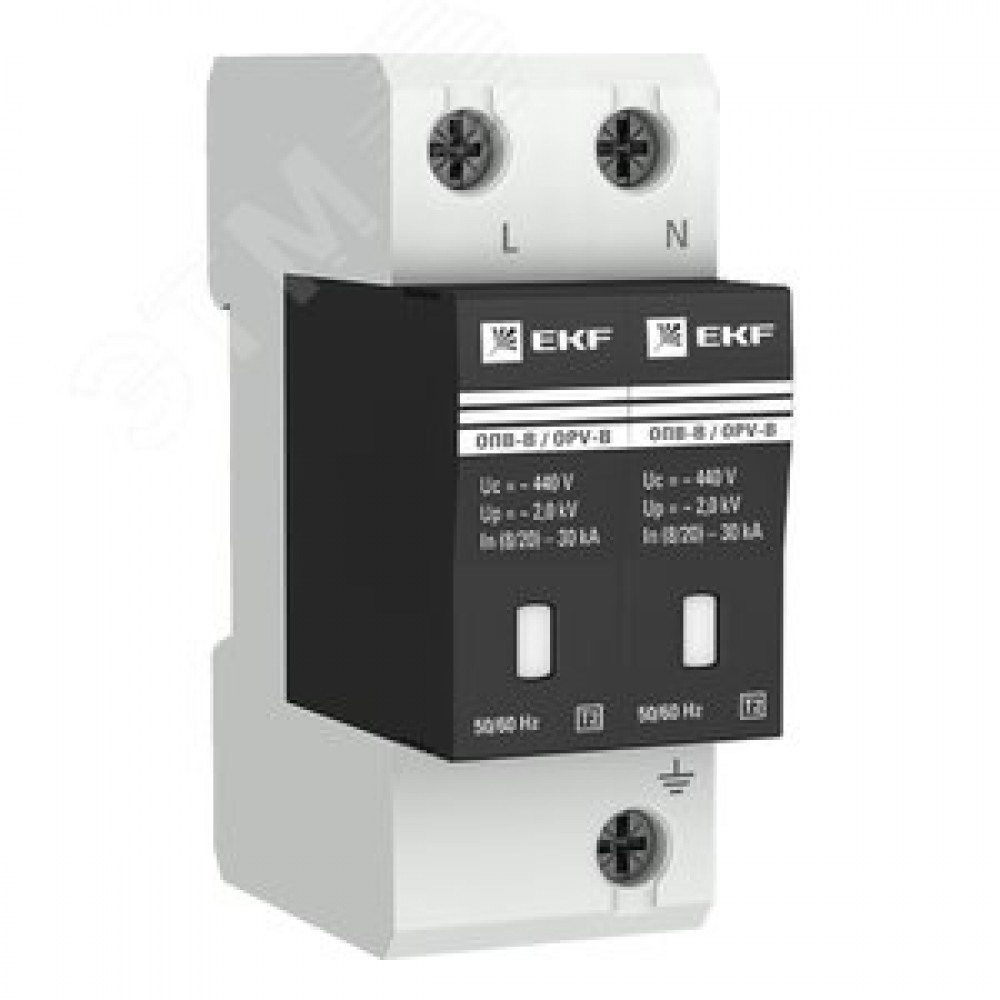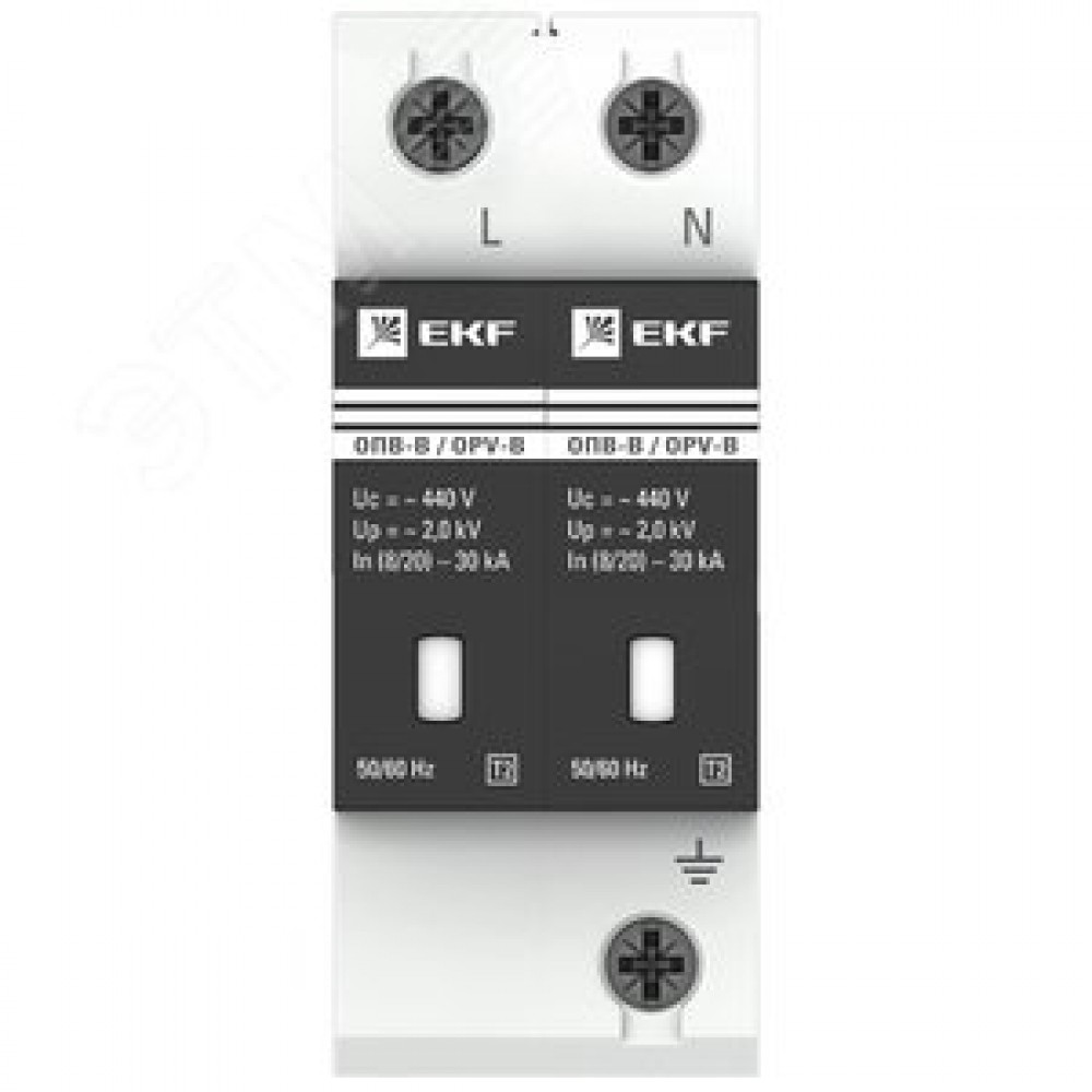 Комплектация ограничитель импульсных напряжений ОПВ-B/2P In 30кА 440В с сигн. EKF
