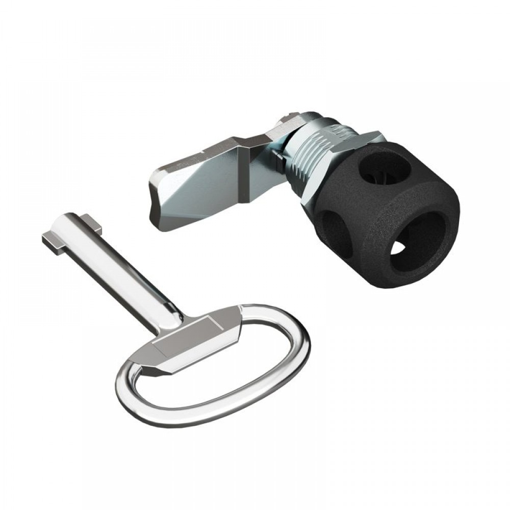Предназначен для защиты корпусов от несанкционированного доступа. Изготовлен из прочного сплава ZAMAK с ригелем из оцинкованной стали. Обеспечивает степень защиты до IP66. Комплектуется личинкой под ключ с двойной бородкой 3 мм, доступ к которой перекрывается дужкой навесного замка. Совместим с корпусами ST, STX, STE, STEX, STH, оснащенными поворотными замками. Цвет: черный.