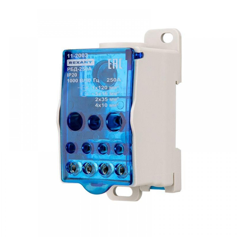 Технические характеристики Блок распределительный РБД-250А на DIN-рейку Rexant 11-2003