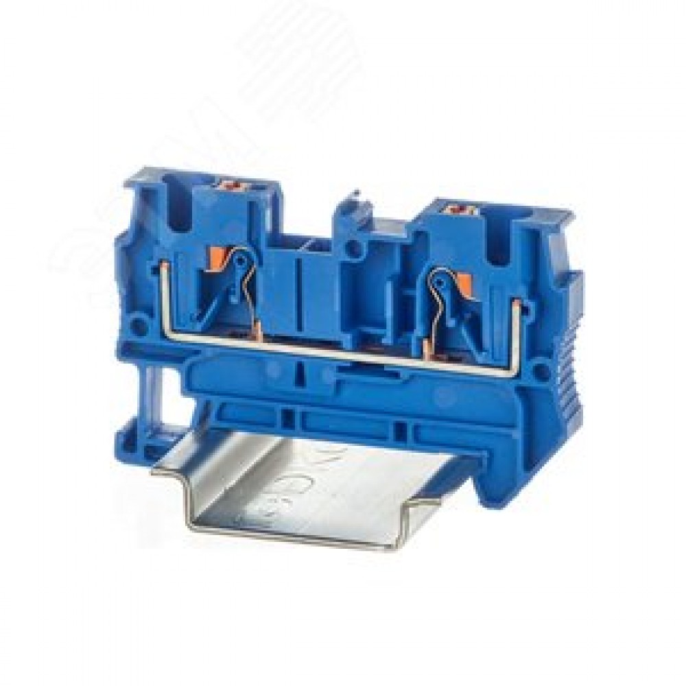 Клемма проходная, зажим push-in, 2 точки подключения, 4 кв.мм, синяя