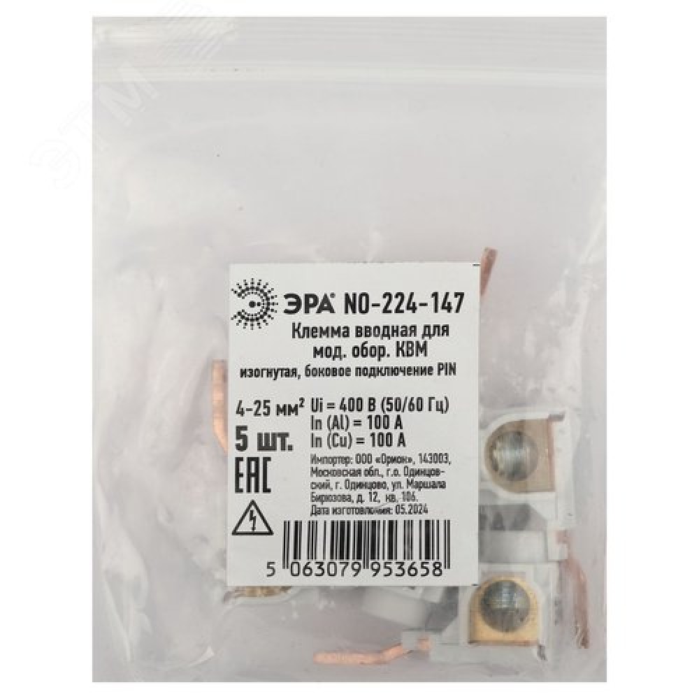 Клеммы силовые вводные КВМ NO-224-147 для модульного оборудования 4-25 мм2 изогнутая боковое подключение PIN 0 104 ₽