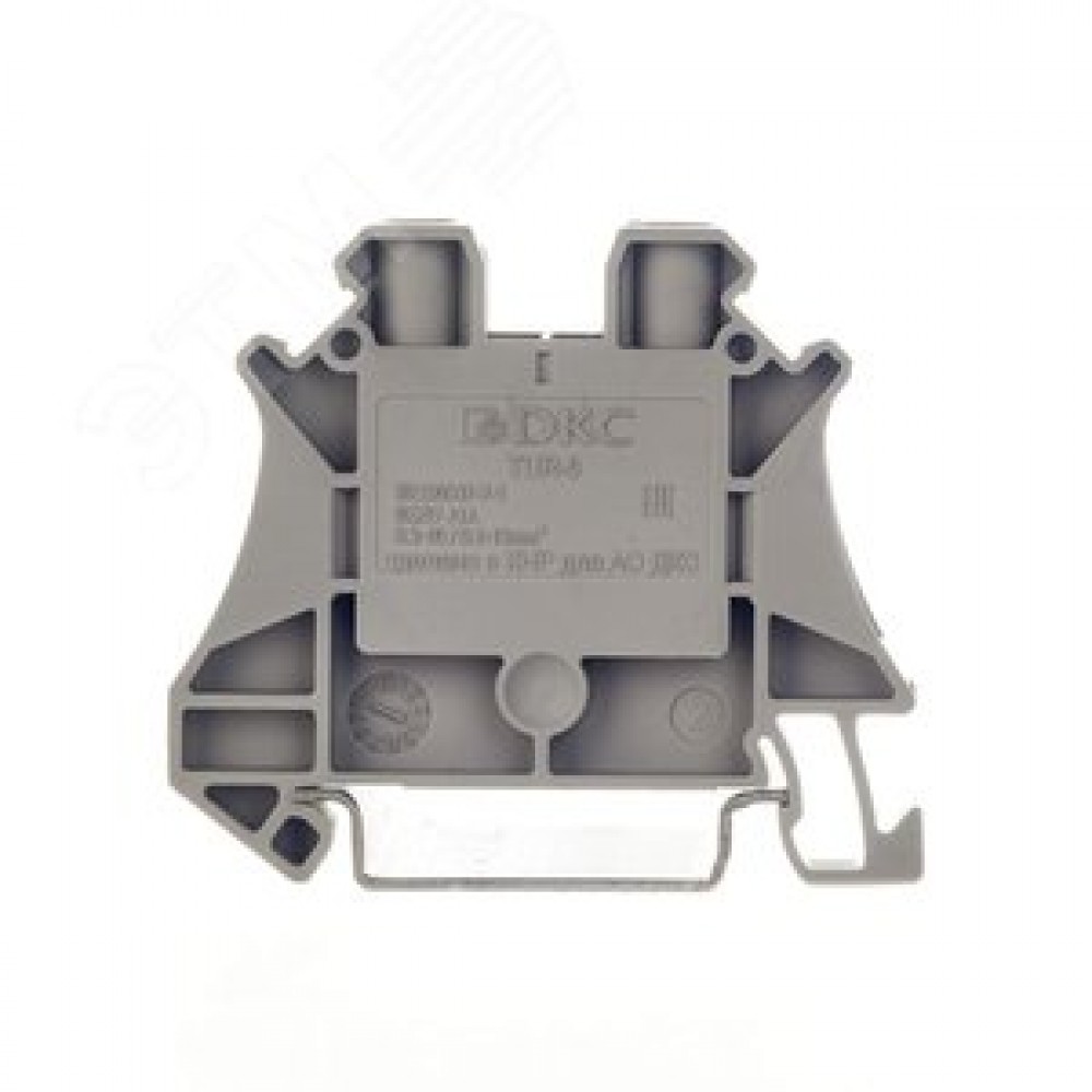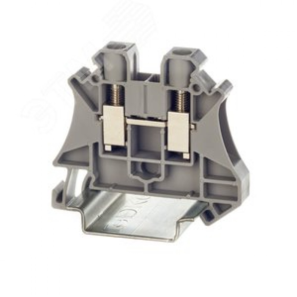 Клемма проходная, винтовой зажим, 2 точки подключения, 6 кв.мм, серая