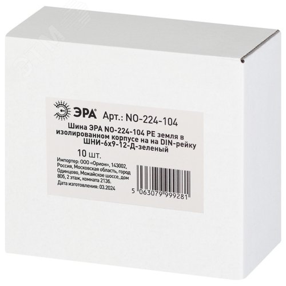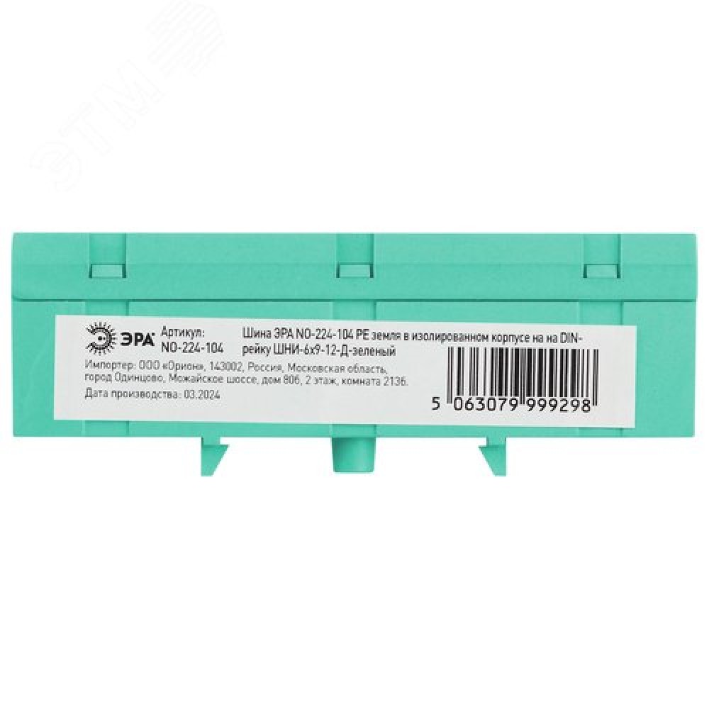 Технические характеристики Шина NO-224-104 PE земля в изолированном корпусе на DIN-рейку ШНИ-6х9-12-Д зеленый