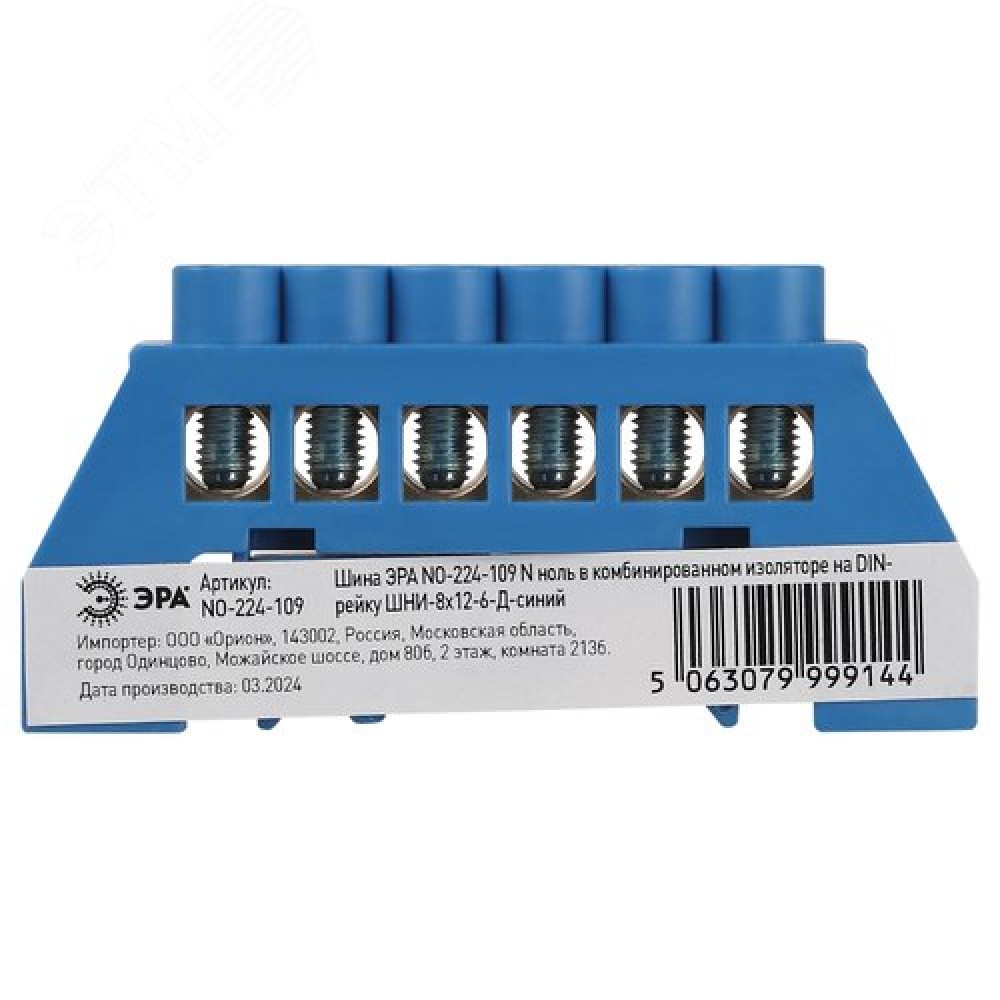 Шина NO-224-109 N ноль в комбинированном изоляторе на DIN-рейку ШНИ-8х12-6-Д-синий 0 113 ₽