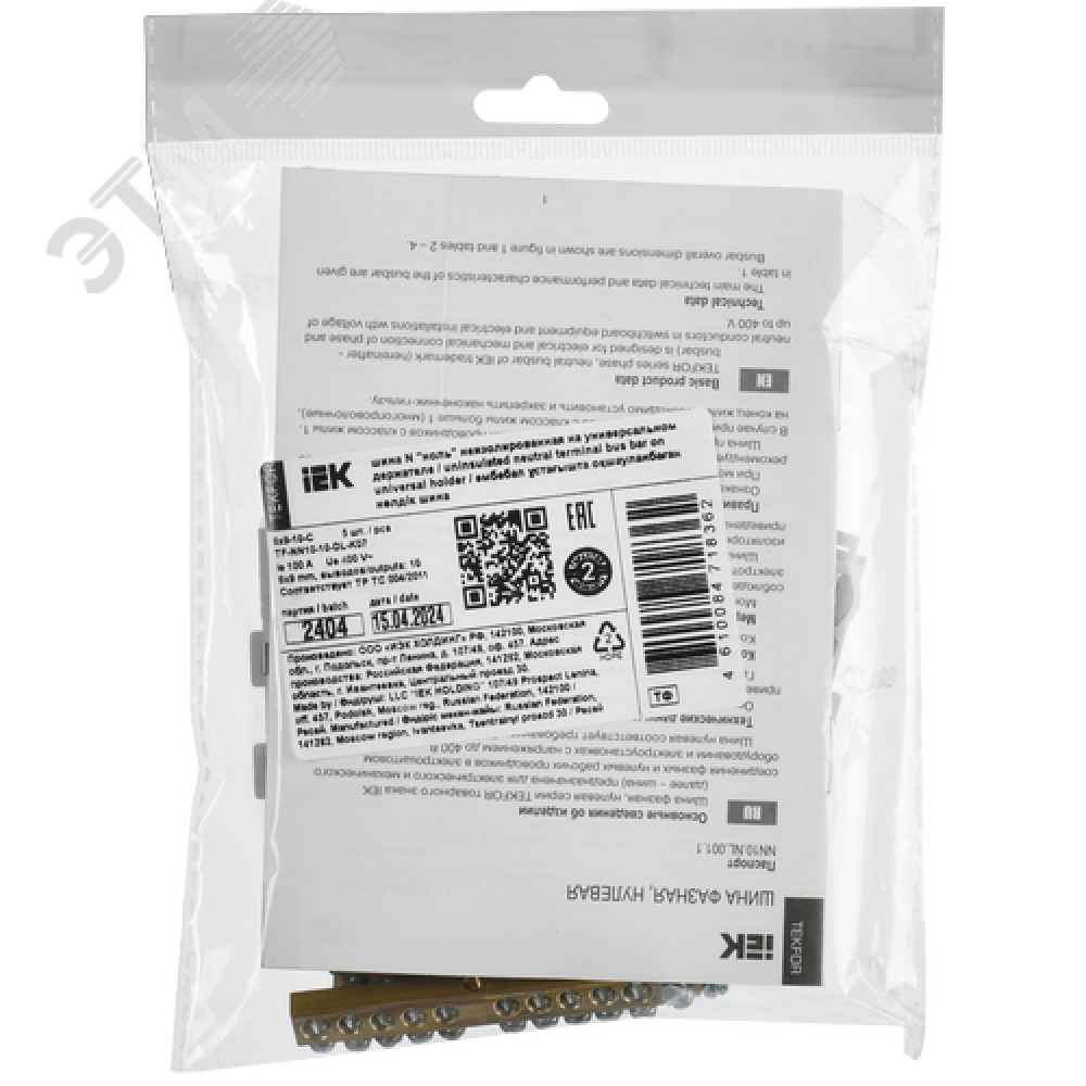 Технические характеристики TEKFOR Шина N ноль неизолированная на универсальном держателе 6х9-10-С IEK