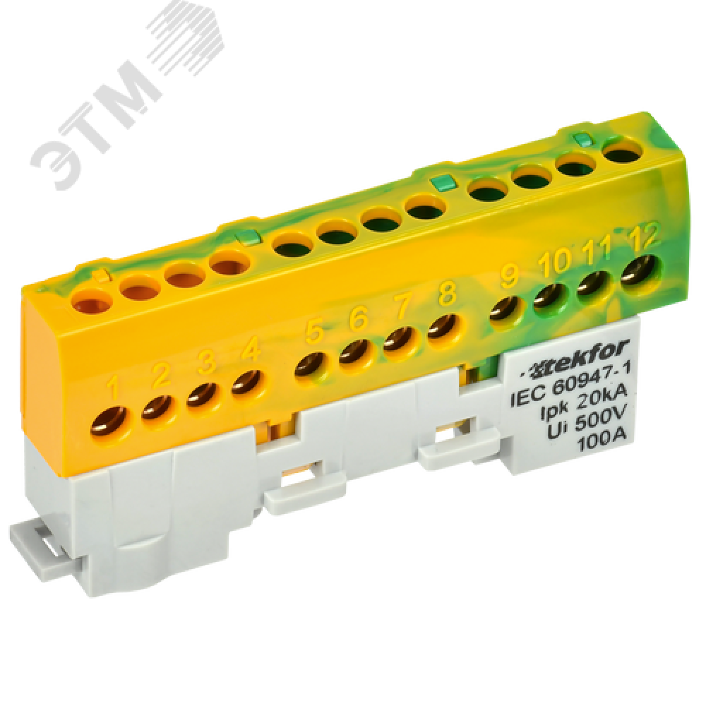 Технические характеристики TEKFOR Шина PE земля изолированная на универсальном держателе 6х9-12-ЖЗ IEK