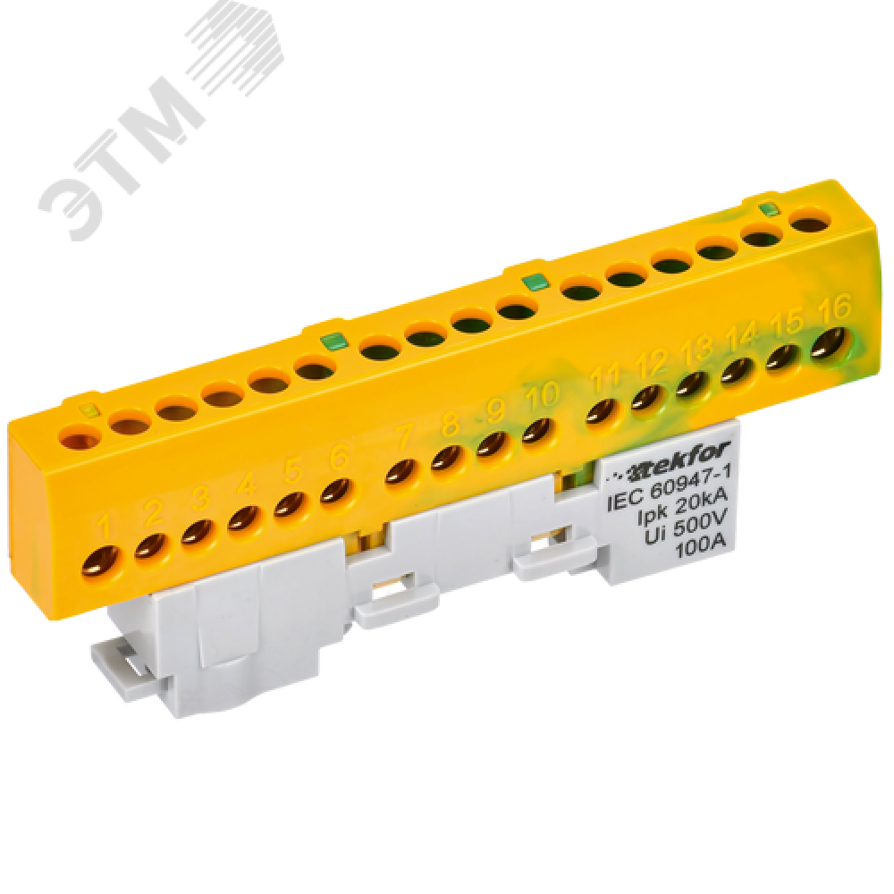 Технические характеристики TEKFOR Шина PE земля изолированная на универсальном держателе 6х9-16-ЖЗ IEK