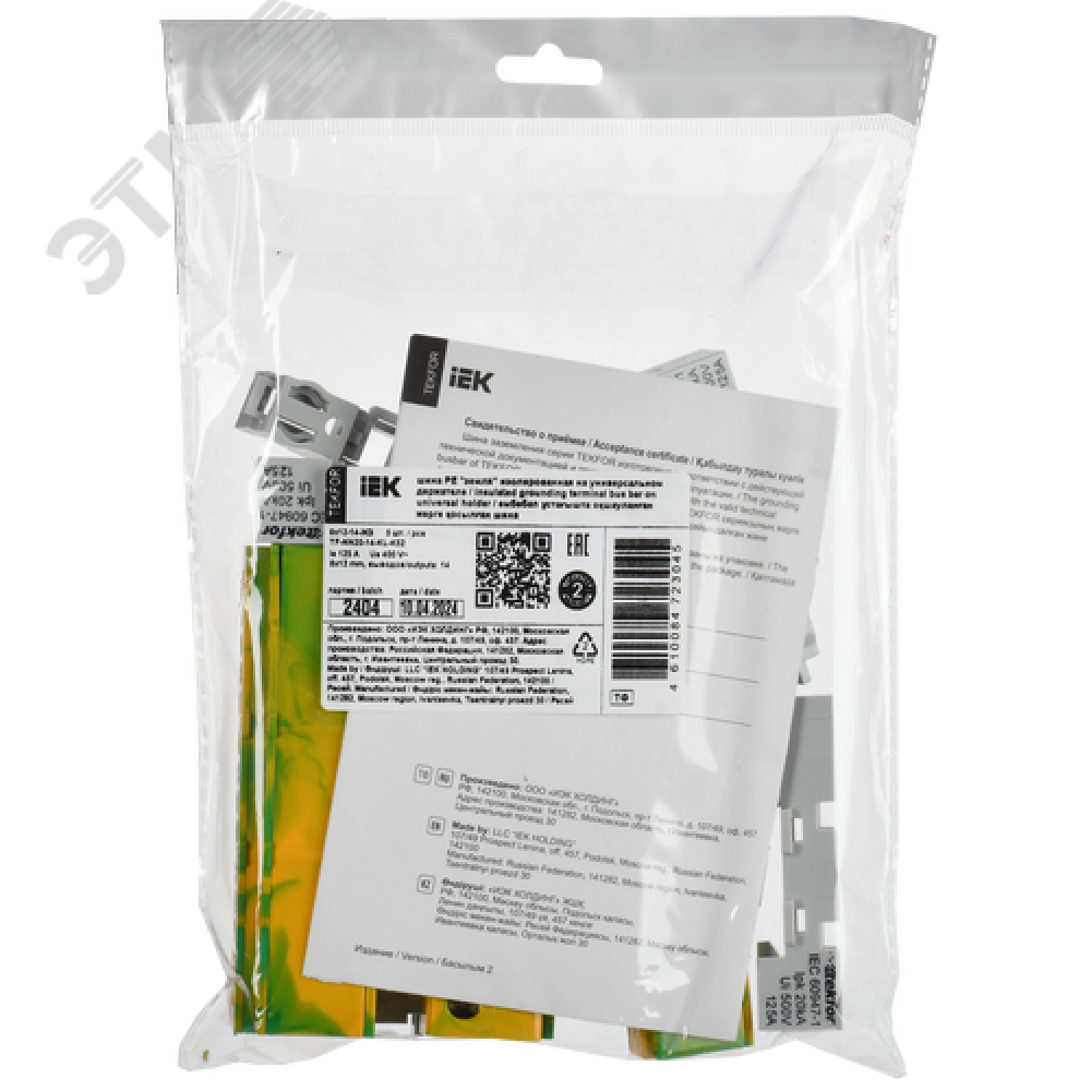 Технические характеристики TEKFOR Шина PE земля изолированная на универсальном держателе 8х12-14-ЖЗ IEK