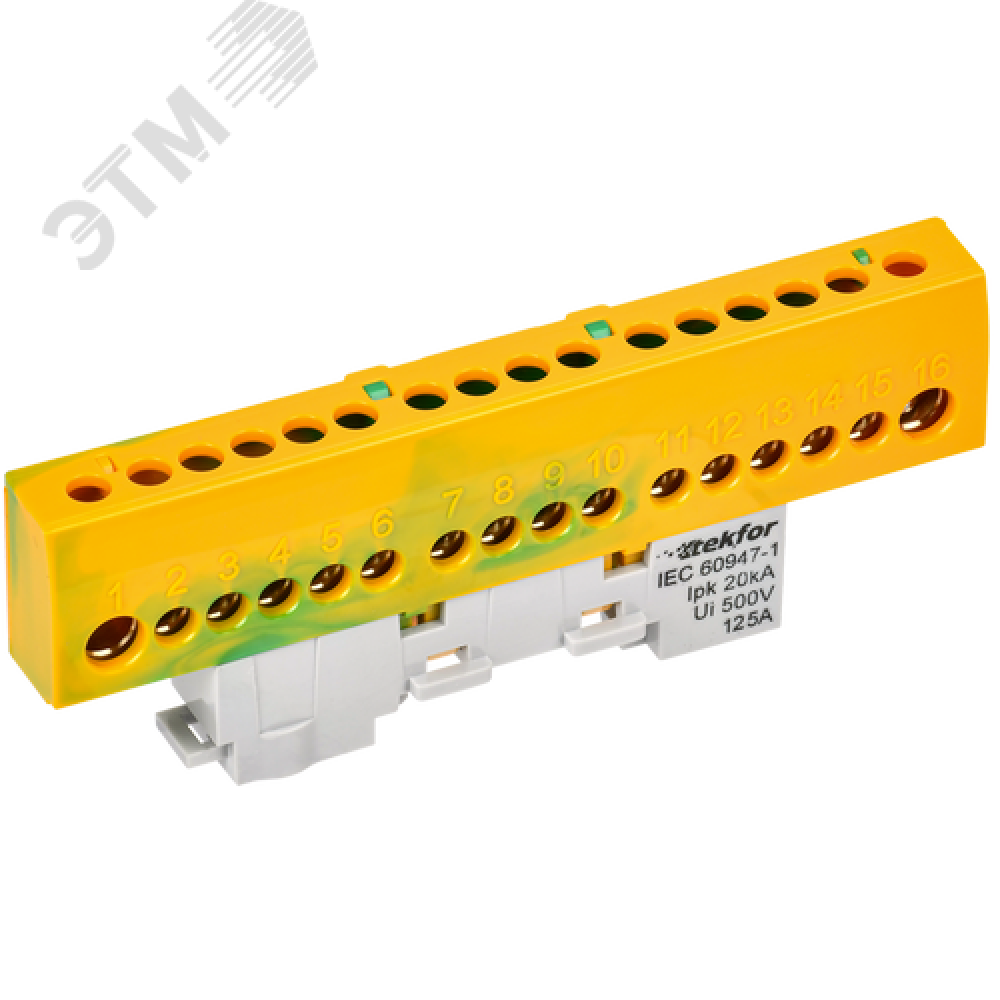 Технические характеристики TEKFOR Шина PE земля изолированная на универсальном держателе 8х12-16-ЖЗ IEK