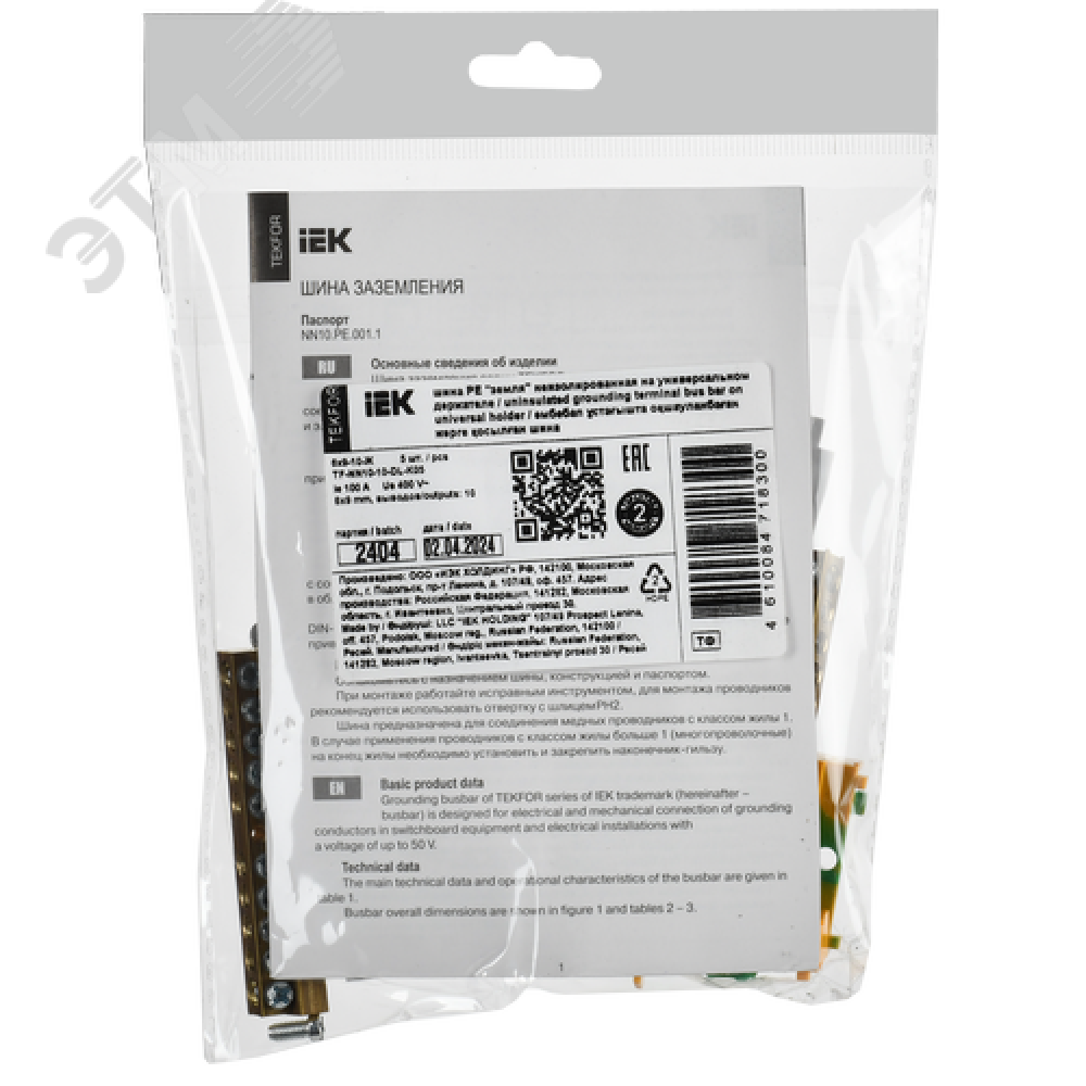 Технические характеристики TEKFOR Шина PE земля неизолированная на универсальном держателе 6х9-10-Ж IEK