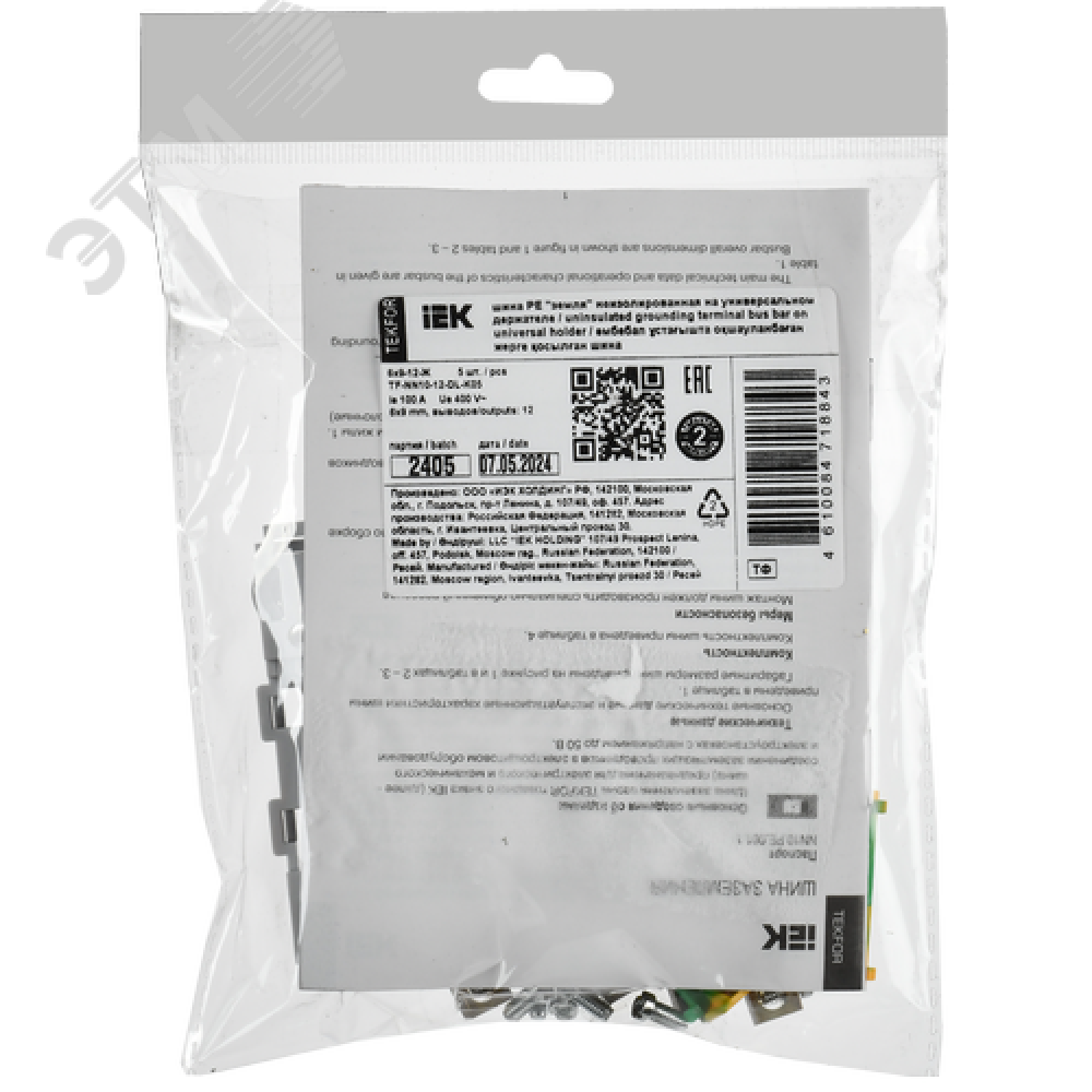Технические характеристики TEKFOR Шина PE земля неизолированная на универсальном держателе 6х9-12-Ж IEK