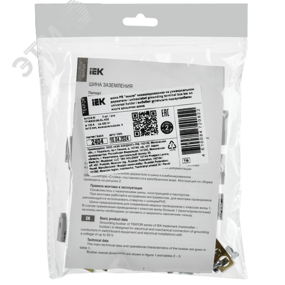 Технические характеристики TEKFOR Шина PE земля неизолированная на универсальном держателе 8х12-6-Ж IEK