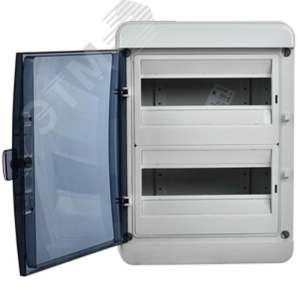 Технические характеристики Корпус пластиковый навесной на 24 модуля КМПн-24 IP65 TEKFOR черная прозрачная дверь