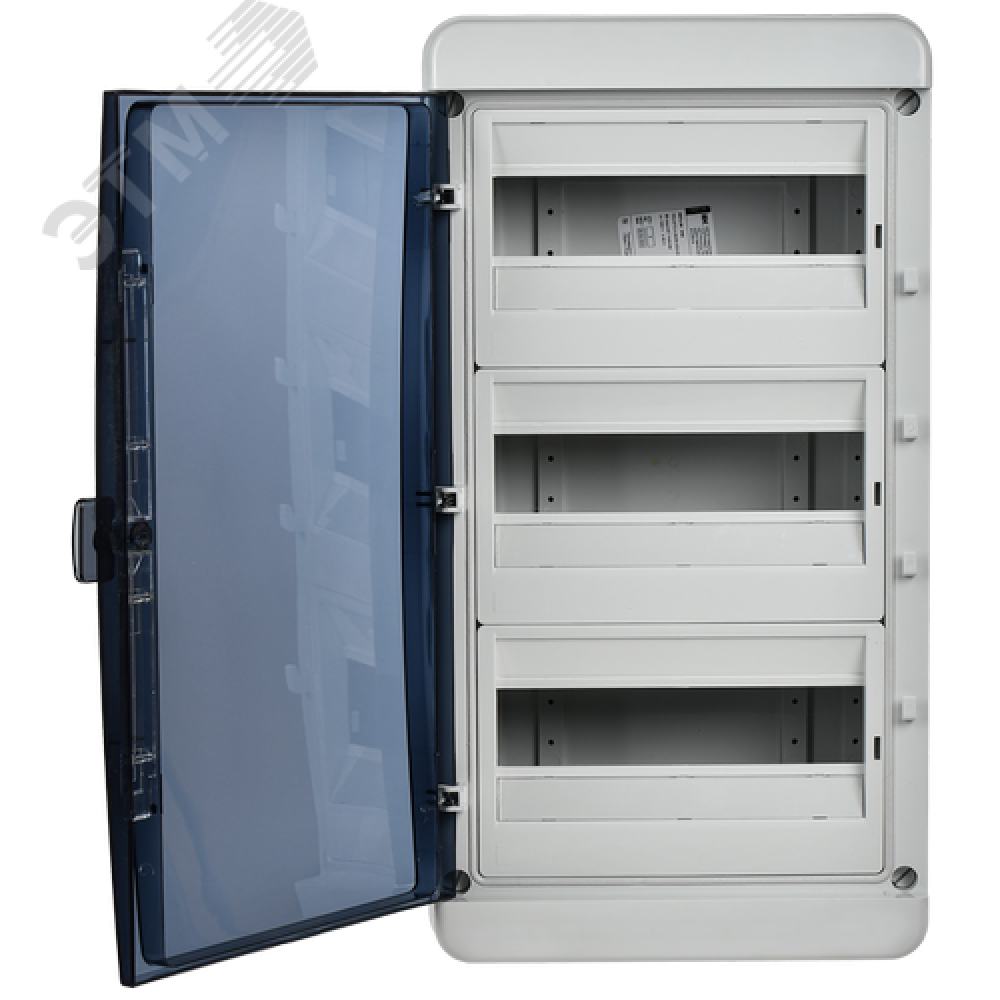 Технические характеристики Корпус пластиковый навесной на 36 модулей КМПн-36 IP65 TEKFOR черная прозрачная дверь