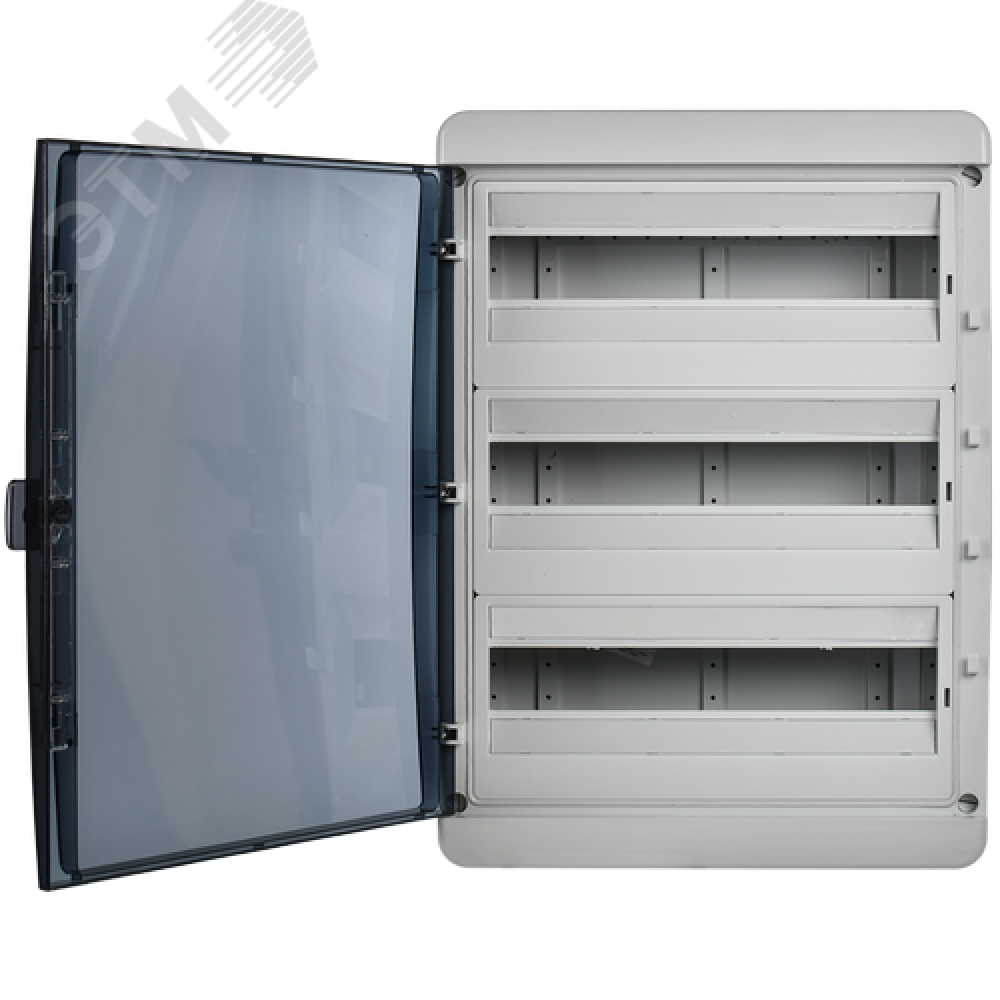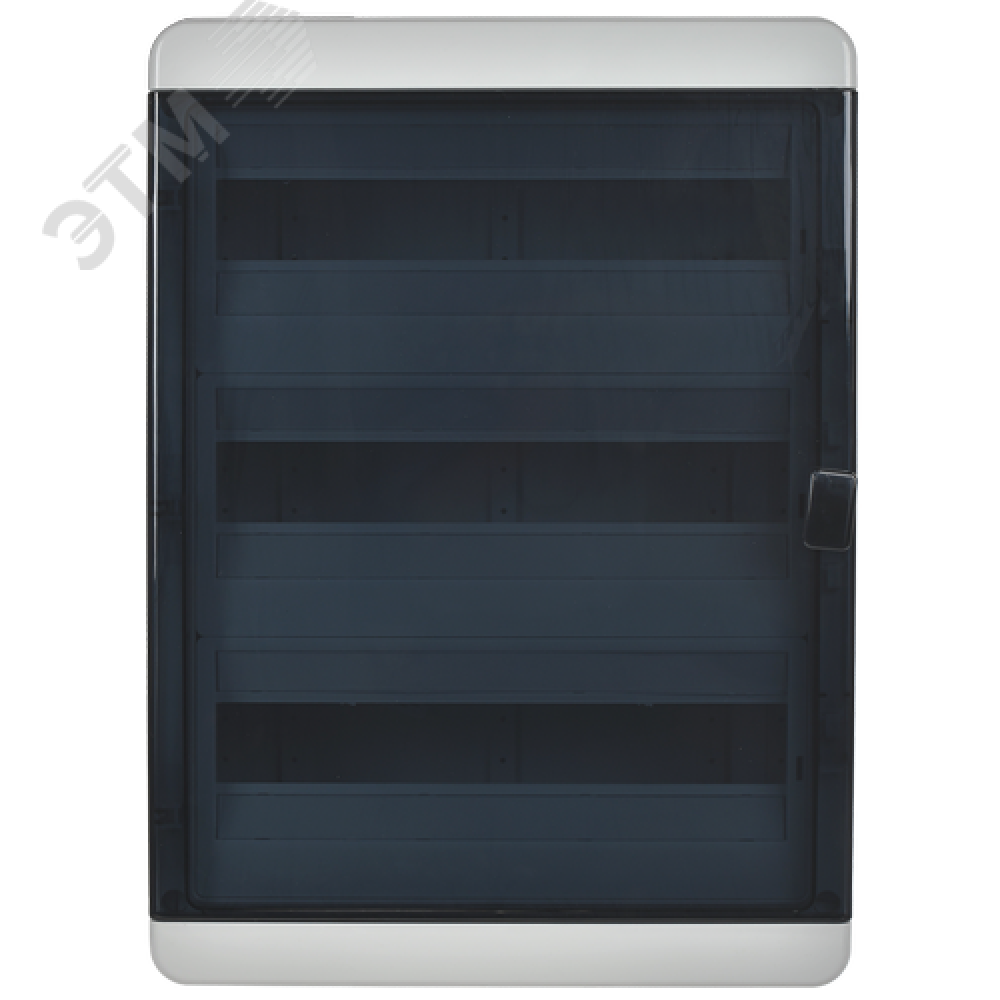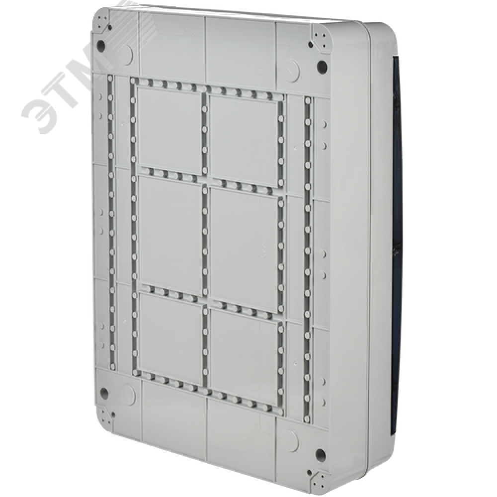 Технические характеристики Корпус пластиковый навесной на 54 модуля КМПн-54 IP65 TEKFOR черная прозрачная дверь