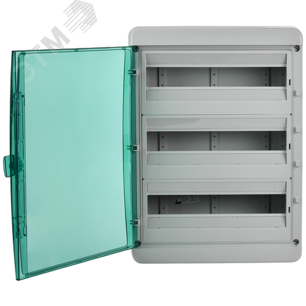 Корпус пластиковый навесной на 54 модуля КМПн-54 IP65 TEKFOR зеленая прозрачная дверь