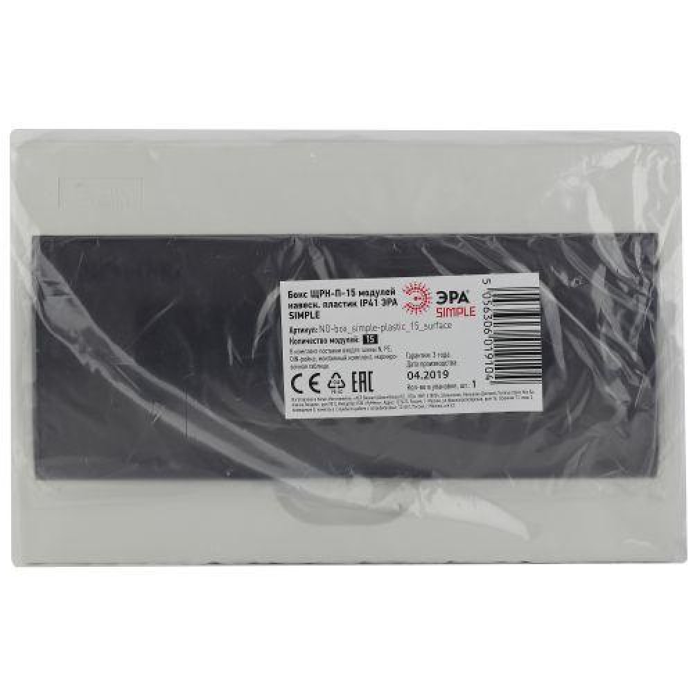 Технические характеристики Бокс ЩРН-П-15 мод. навесной пластик IP41 SIMPLE NO-box_simple-plastic_15_surface ЭРА Б0041526