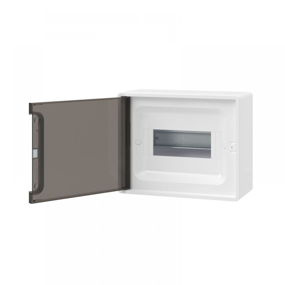 • Щиток 8 мод. настенный FRAME с тонированной дверцей с 2 шинами PEN на 6 и 8 отв. бел. DKC F08W1WD