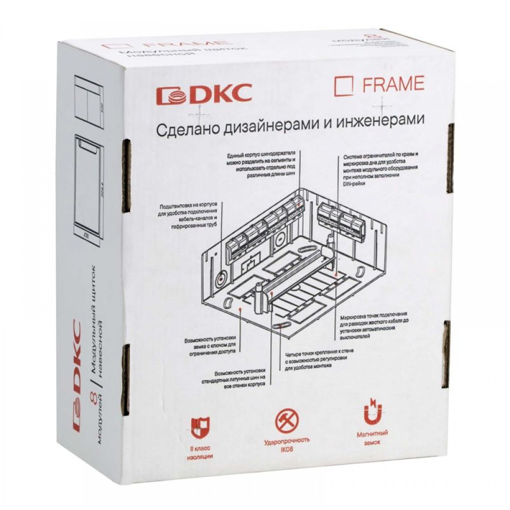 Щиток FRAME предназначен для монтажа в жилых и административных помещениях. Применяется для установки модульных устройств. Установка стандартных латунных шин возможна по всем стенкам корпуса щитка. Единый корпус шинодержателя можно разделить на сегменты, и использовать отдельно, под различные длины шин, в зависимости от задач. Симметричный корпус щитка позволяет открывать дверь слева или справа. Количество модулей - 8. Цвет корпуса белый, цвет двери - тонированная, ширина - 224 мм, высота - 181 мм, глубина - 102 мм. Материал - термостойкий и ударопрочный пластик. В комплекте: оцинкованная DIN-рейка, сборочные винты для сборки щитка, 2 шины PEN на 6 и 8 отверстий, 1 шинный держатель на 4 сегмента, наклейки для маркировки, инструкция по сборке.