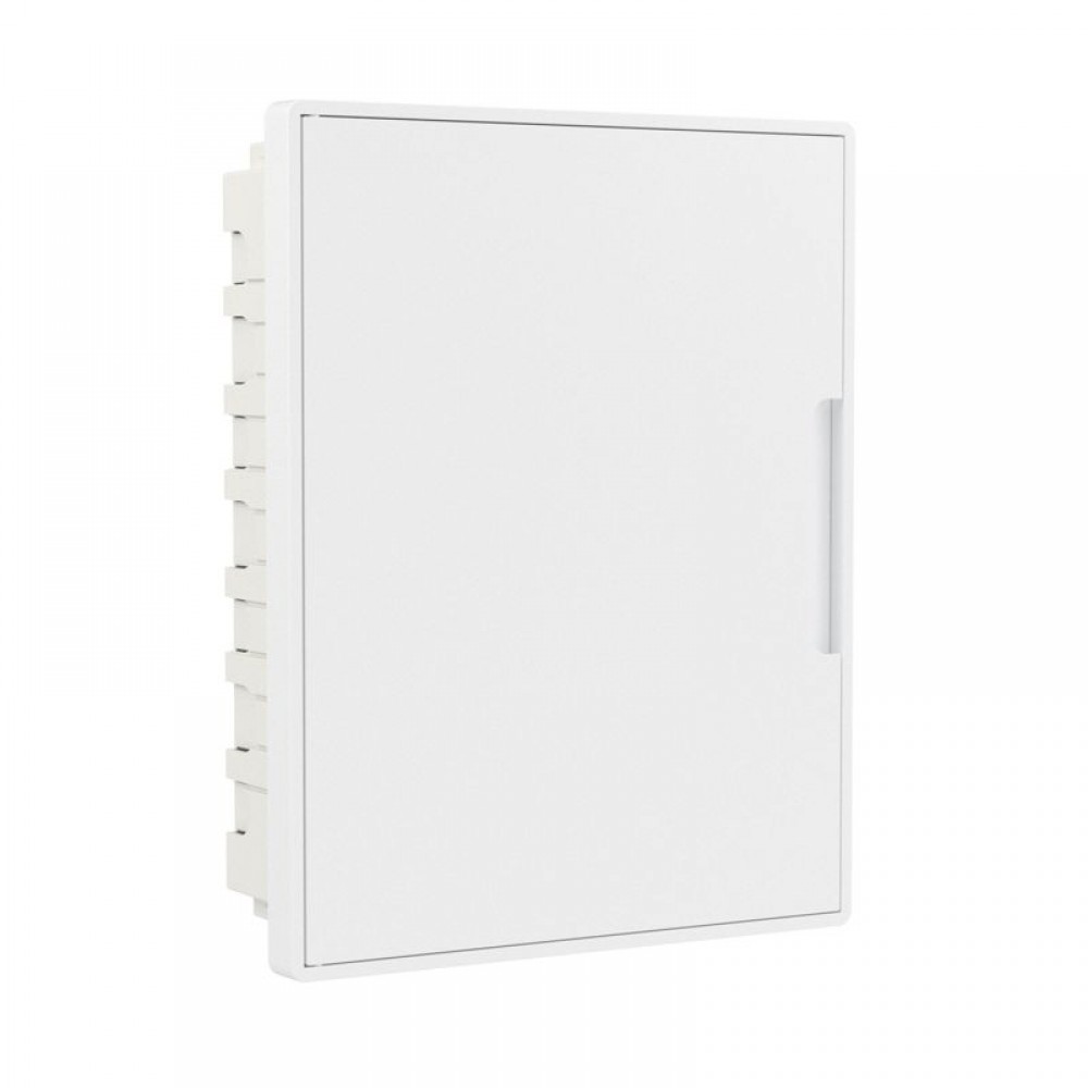 Встраиваемый щиток FRAME предназначен для скрытого монтажа в бетонные\кирпичные стены. Применяется для установки модульных устройств. Съемная рама с DIN-рейками позволяет сначала смонтировать и подключить оборудование и затем установить его в основание щитка в стену. Установка стандартных латунных шин возможна по всем стенкам корпуса и на боковую сторону съемной рамы щитка. Единый корпус шинодержателя можно разделить на сегменты. Симметричный корпус щитка позволяет открывать дверь слева или справа. Количество модулей- 24. Цвет корпуса белый, цвет двери- белая, ширина- 311,6 мм, высота- 398,6 мм, глубина- 100 мм. Материал- термостойкий и ударопрочный пластик. В комплекте DIN-рейка из гальванической оцинкованной стали, 4 шины PEN по 2шт на 6 и 8 отверстий