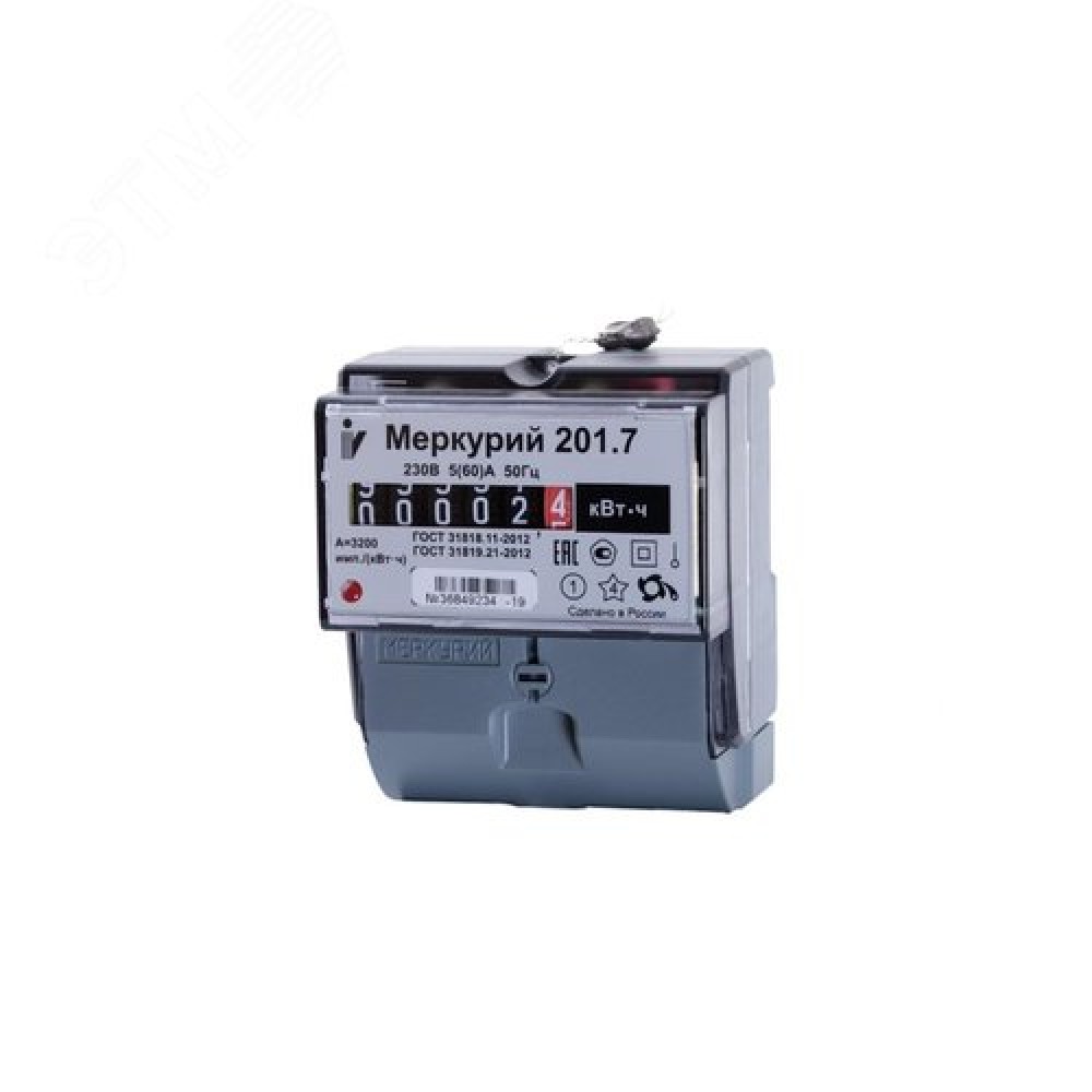 • Счетчик электроэнергии Меркурий 201.7 однофазный однотарифный, 5(60), класс точности 1.0, D, ЭМОУ