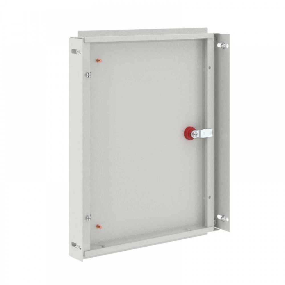 Дверь внутренняя для корпусов ST/STX/STE/STEX/STH изготавливается из стали толщиной 1,5 мм с атмосферостойким порошковым покрытием, цвет RAL7035. Личинка замка, ригели, петли из металла. Допустимая статическая нагрузка на дверь 12 кг, максимальный угол открытия 95°, степень пыле- и влагозащиты IP20 при сохранении IP66 для корпуса. Расстояние от монтажной платы до внутренней двери при глубине корпуса 200 мм - от 127 до 159 мм. Комплект поставки: внутренняя дверь с рамой, петли, замок с личинкой под ключ с двойной бородкой, комплект заземления без проводов. Габариты 600x500 (ВхШ) мм.