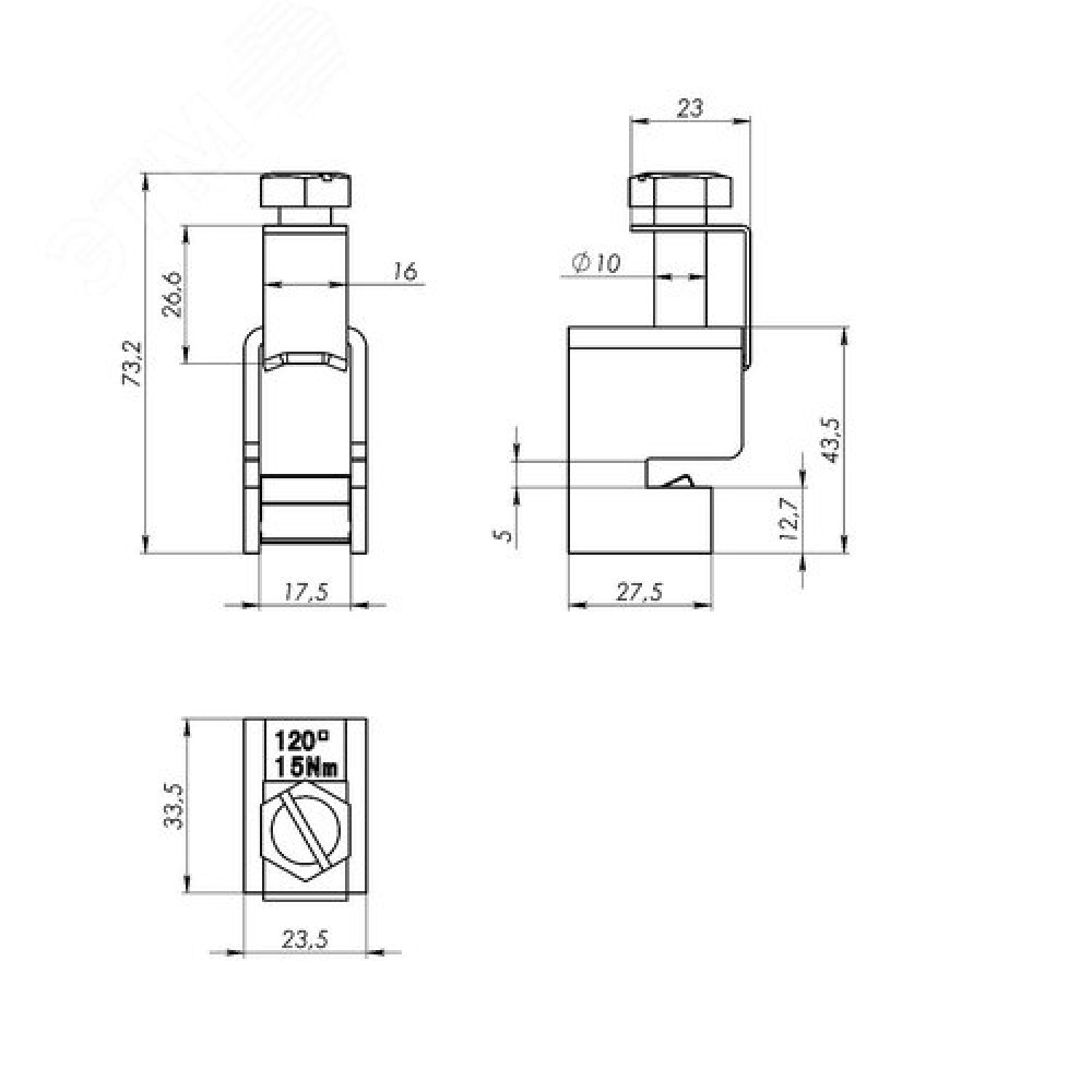 Технические характеристики Клемма шинная 5 мм для кабеля 70-120 мм