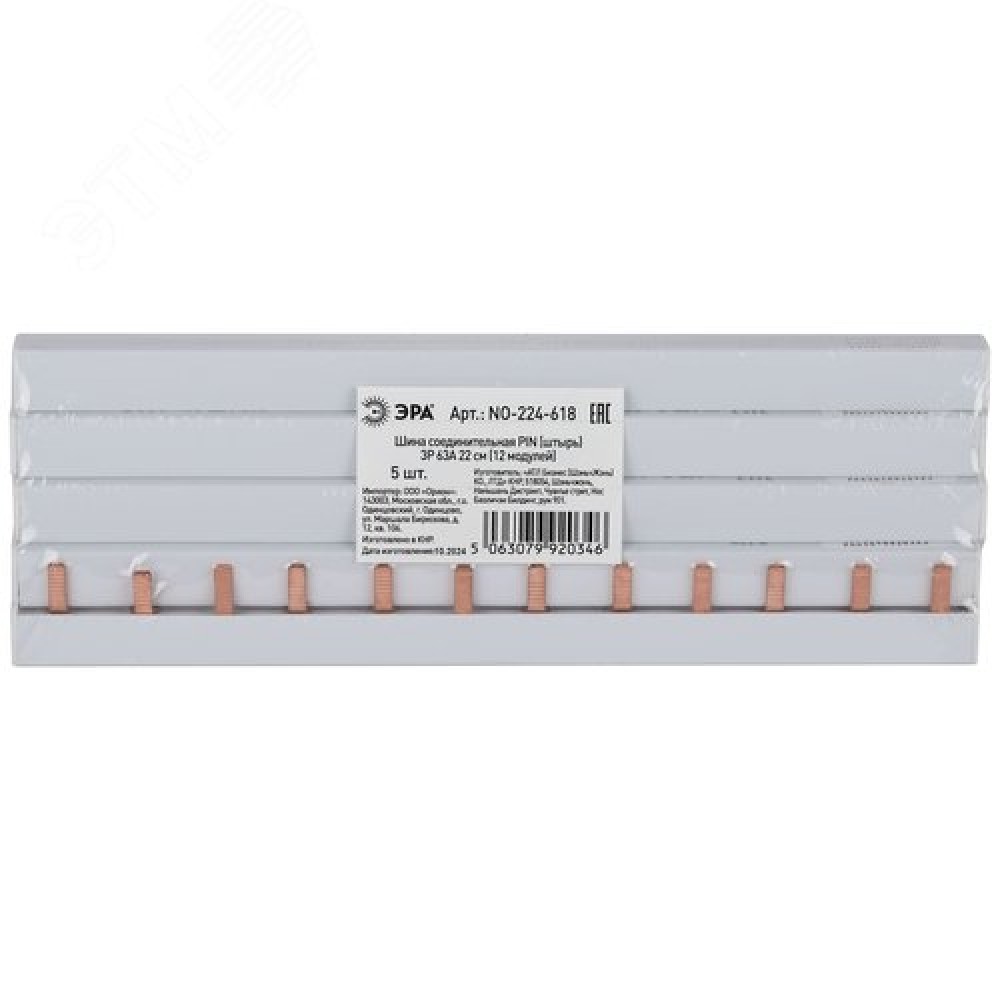Технические характеристики Шина соединительная PIN штырь 3Р 63А 22 см 12 модулей NO-224-618
